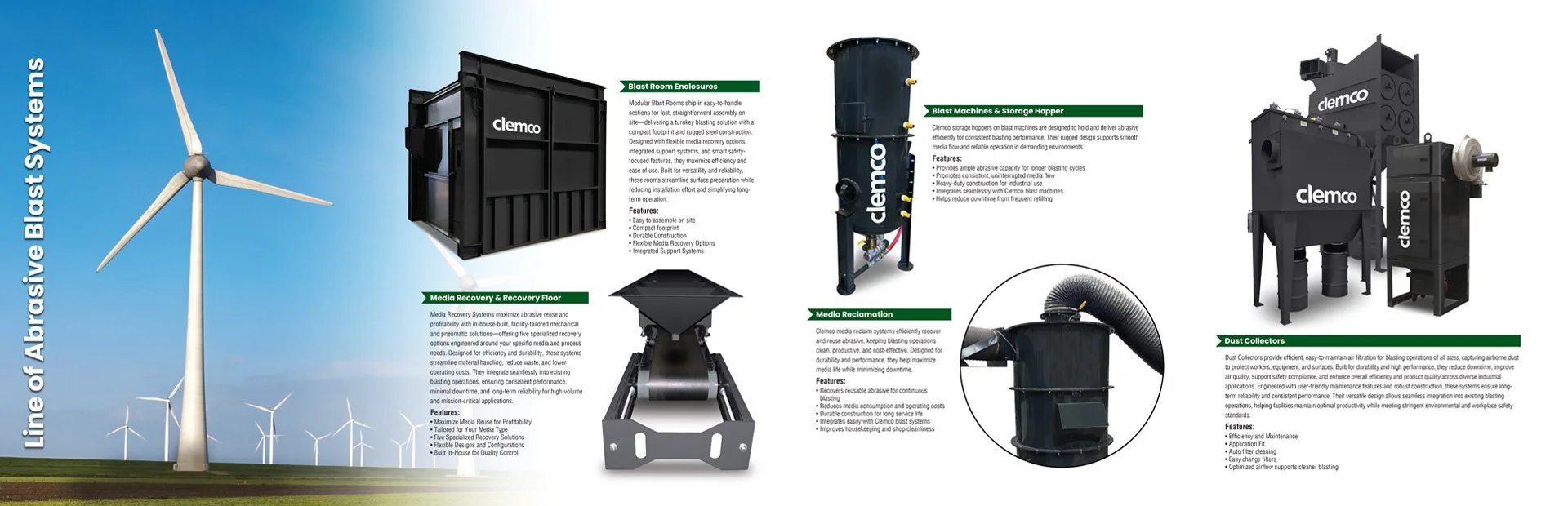 Application Fit – Clemco’s three dust collector lines are engineered in-house to meet the productivity, safety, and environmental needs of abrasive blasting, from small cabinet operations to large blast room systems.