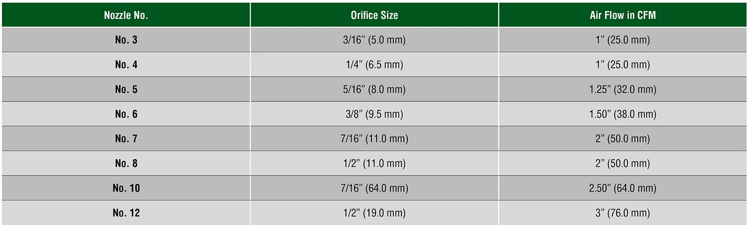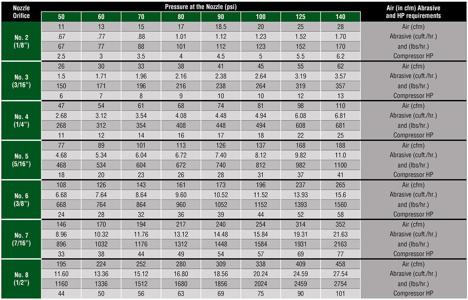 *Consumption rates are based on abrasives that weigh 100 lbs per cubic foot.