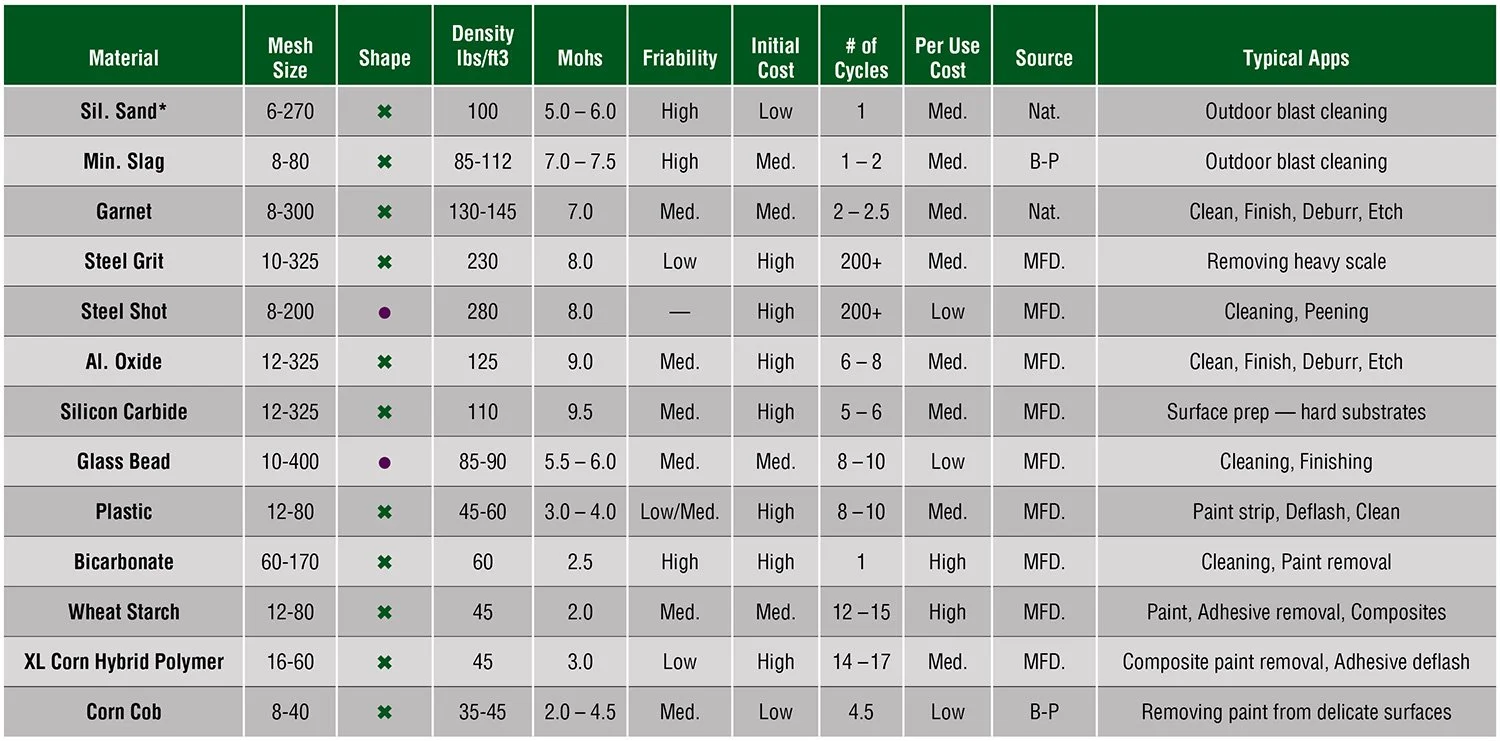 * Consult OSHA regulations before using silica sand as a blast abrasive.